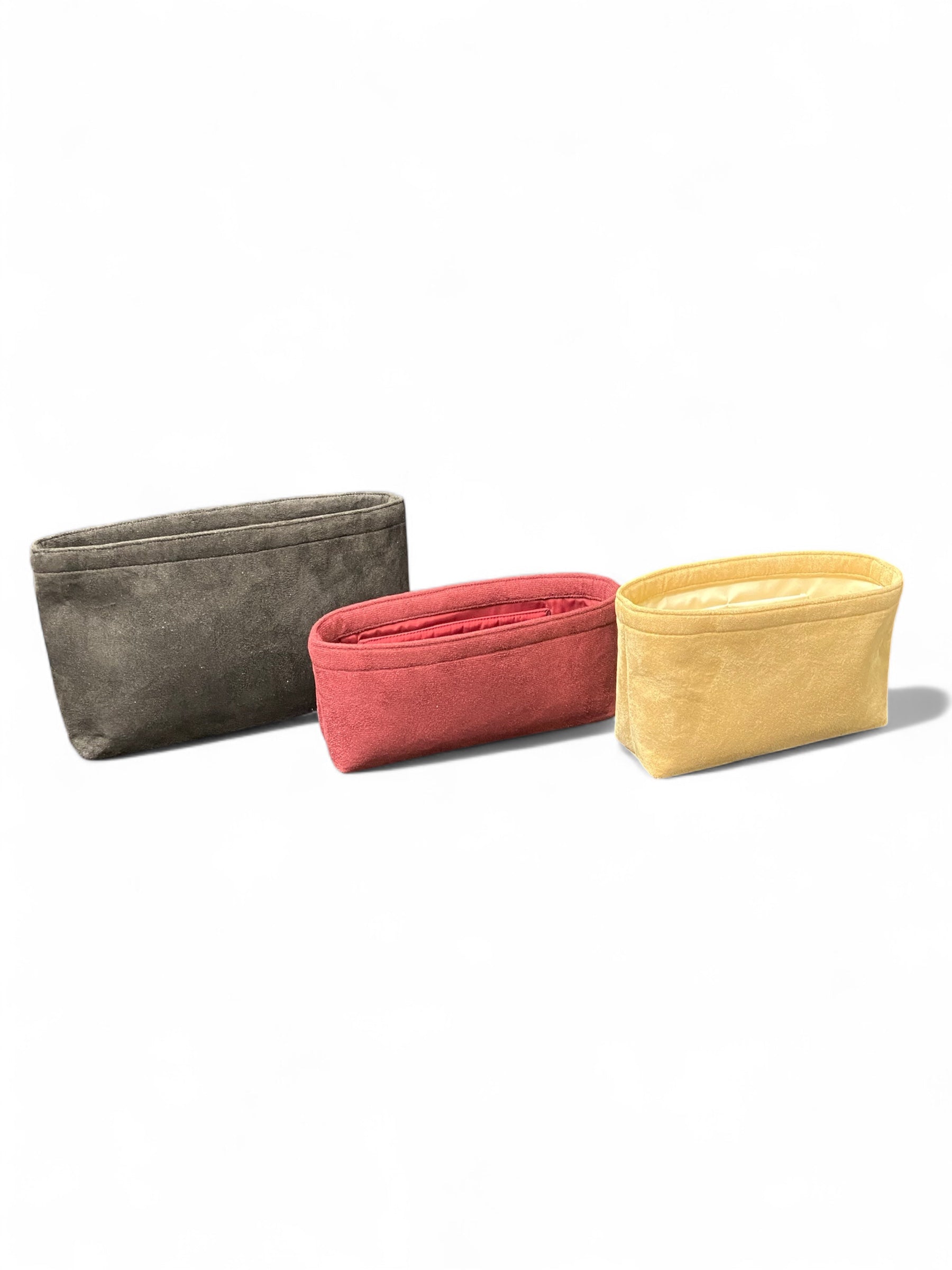 Ultra suede Purse organizers help to protect the lining of your bags and comes with pockets along the lining to help with storage and compartmentalization in your bags. They come in small, medium and large, as well as black, nude and burgundy.